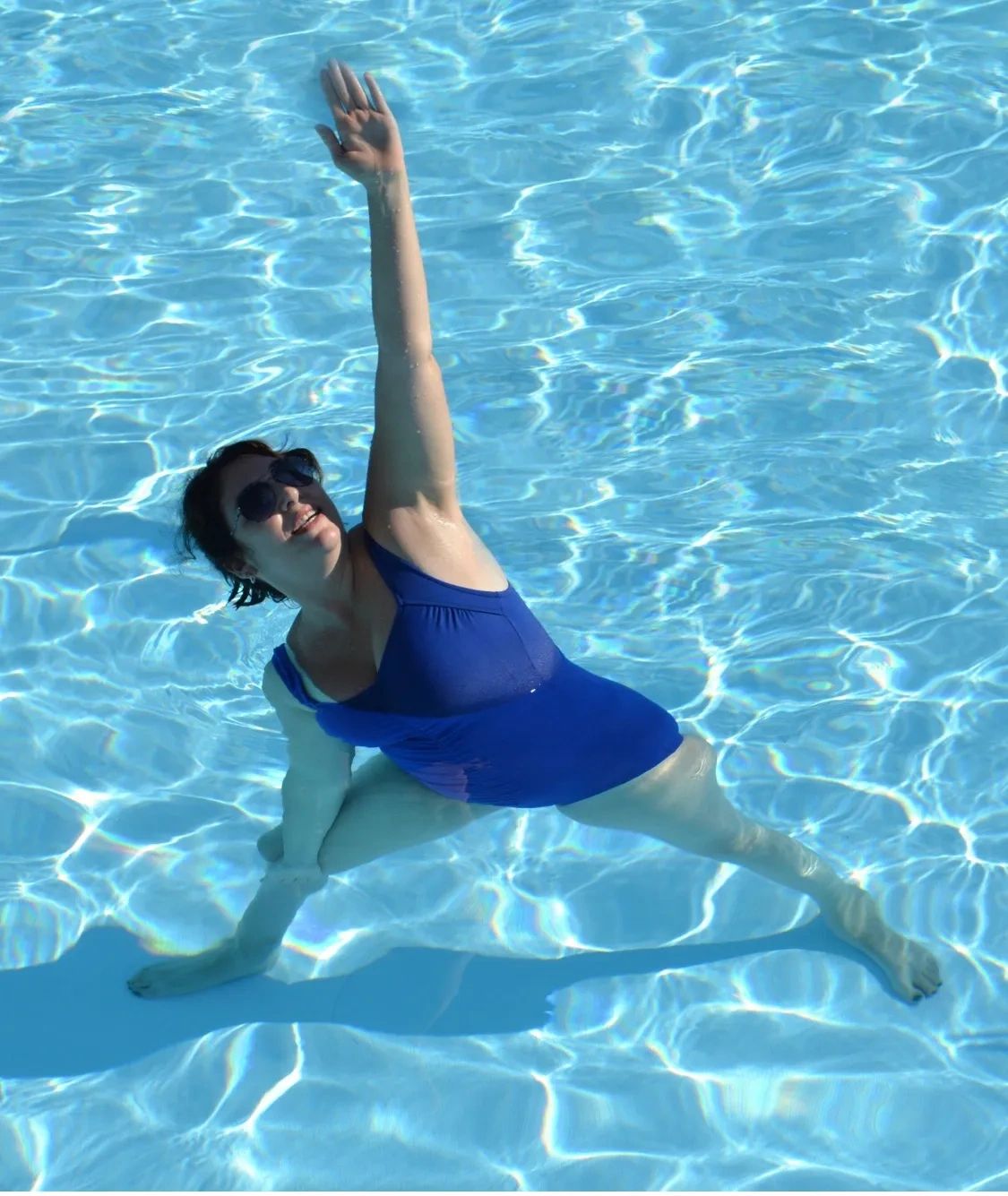 AQUOGA is a 50 minute aquatic fitness class practiced in shallow and deep water. In Shallow water we work on Aquoga: Aquatic-yoga, stretching, toning, balance & meditation. In deep water we use props to enhance your cardio experience: flotation belts and/or pool noodles, & water barbells